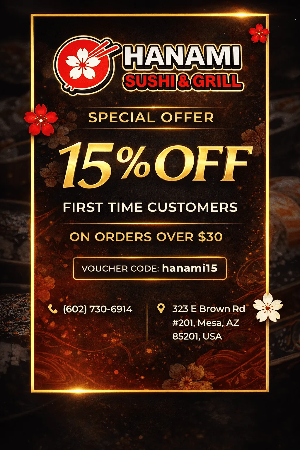At Hanami Sushi & Grill, we bring together the art of traditional Japanese cuisine and a modern dining experience. Our menu features expertly crafted sushi rolls, fresh sashimi, and flavorful grilled specialties made with high-quality ingredients. Each dish is thoughtfully prepared to deliver authentic taste and beautiful presentation. We take pride in offering a welcoming atmosphere that is perfect for family dinners, casual outings, and special gatherings. From classic favorites to creative signature rolls, there is something for everyone to enjoy. Our team is dedicated to providing friendly service and a memorable dining experience.